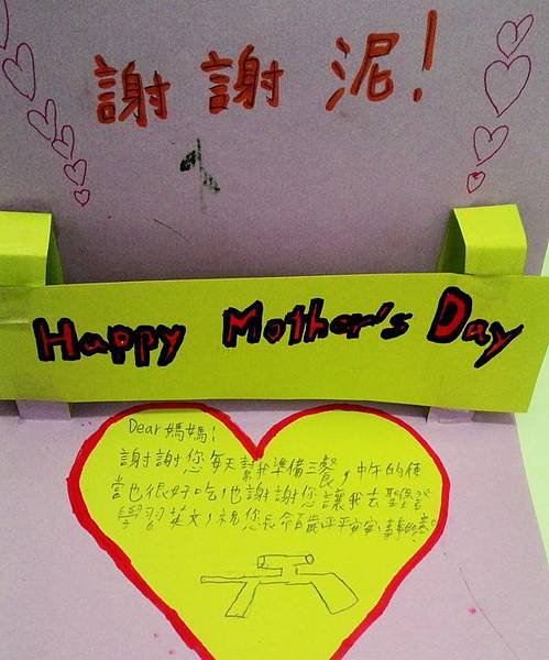 母親節卡片。。。媽咪很珍惜呀,上國中之後,就很難再收到賢親手繪製的卡片了...