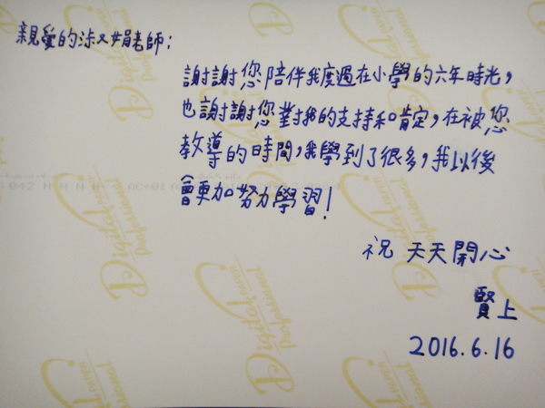 教師節卡片。。。張淑娟老師是賢子小一、二、五、六的導師,教導了賢子四年,