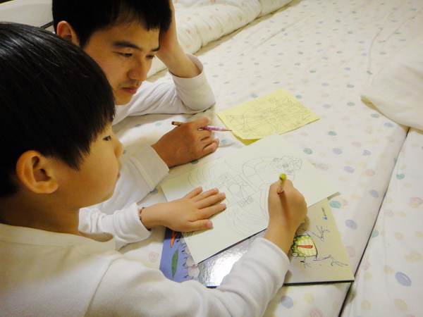 賢子小小時,睡前總愛跟爸比一起看書或是畫畫,關燈後,要聽媽咪說睡前故事,還嚷著