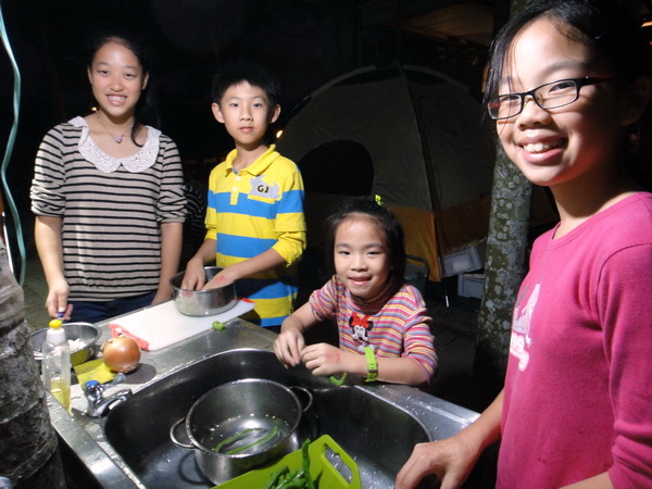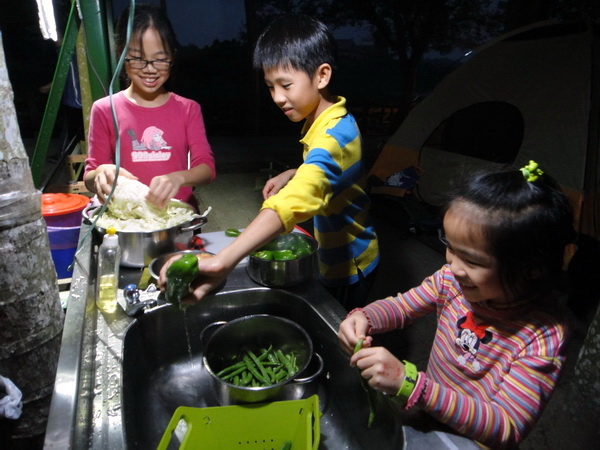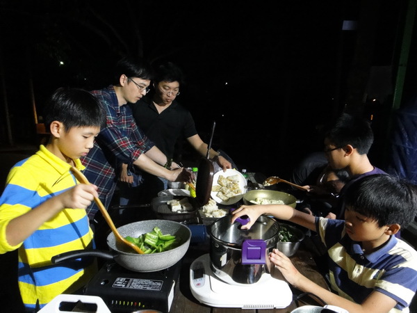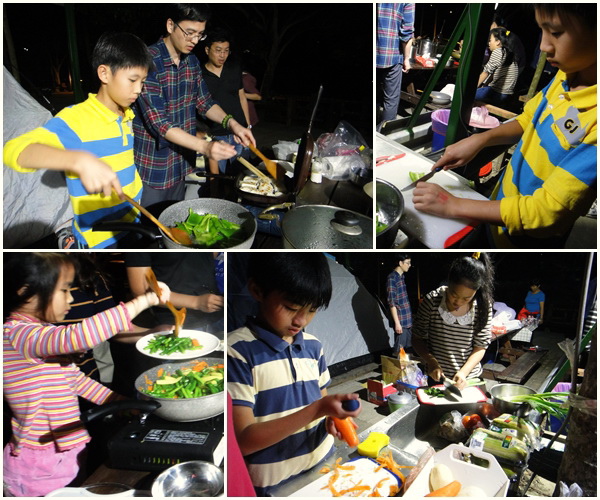 回到營地後,天色也漸暗了,6位小小總舖師要開始大顯身手,